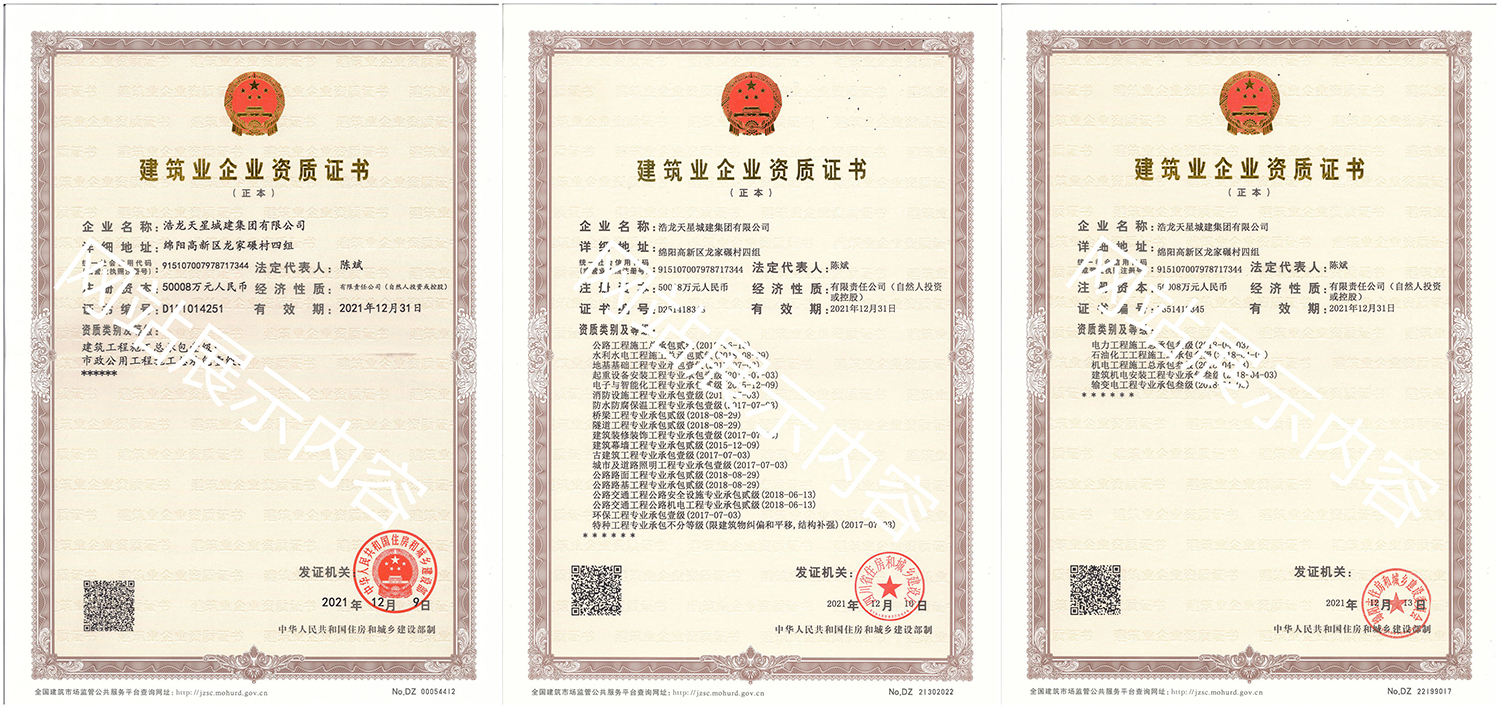 浩龍?zhí)煨浅墙瘓F有限公司,2007年成立于“李白故鄉、中國科技城”—四川省綿陽市,企業注冊資本金5.0008億元。公司共有27項建筑業企業資質,其中國家一級資質11項,二級資質10項,三級資質5項,特種資質不分等級1項,類別涵蓋建筑、市政、水利、機電、隧道、起重設備安裝等基礎及未來發(fā)展重點專業。公司...
